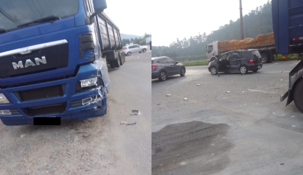 Um acidente entre carro e caminhão foi registrado na SC-108, na saída da Avenida Izídio Carlos Peixer, na manhã desta terça-feira (26) por volta das 7h.