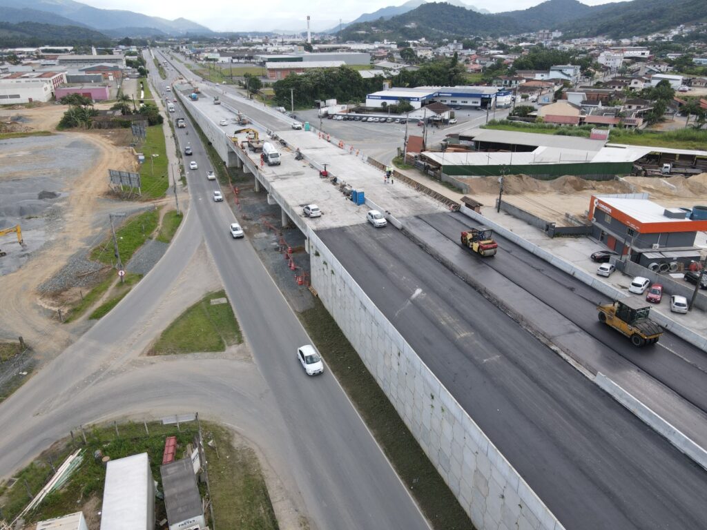 “Podemos citar as sete obras que temos em Guaramirim e Jaraguá, a passarela que já entregamos. Na próxima segunda-feira estamos entregando o viaduto do Guamiranga, a parte de cima, a parte de baixo ela precisa ser feita porque eu jogo o trânsito pra cima”, disse.