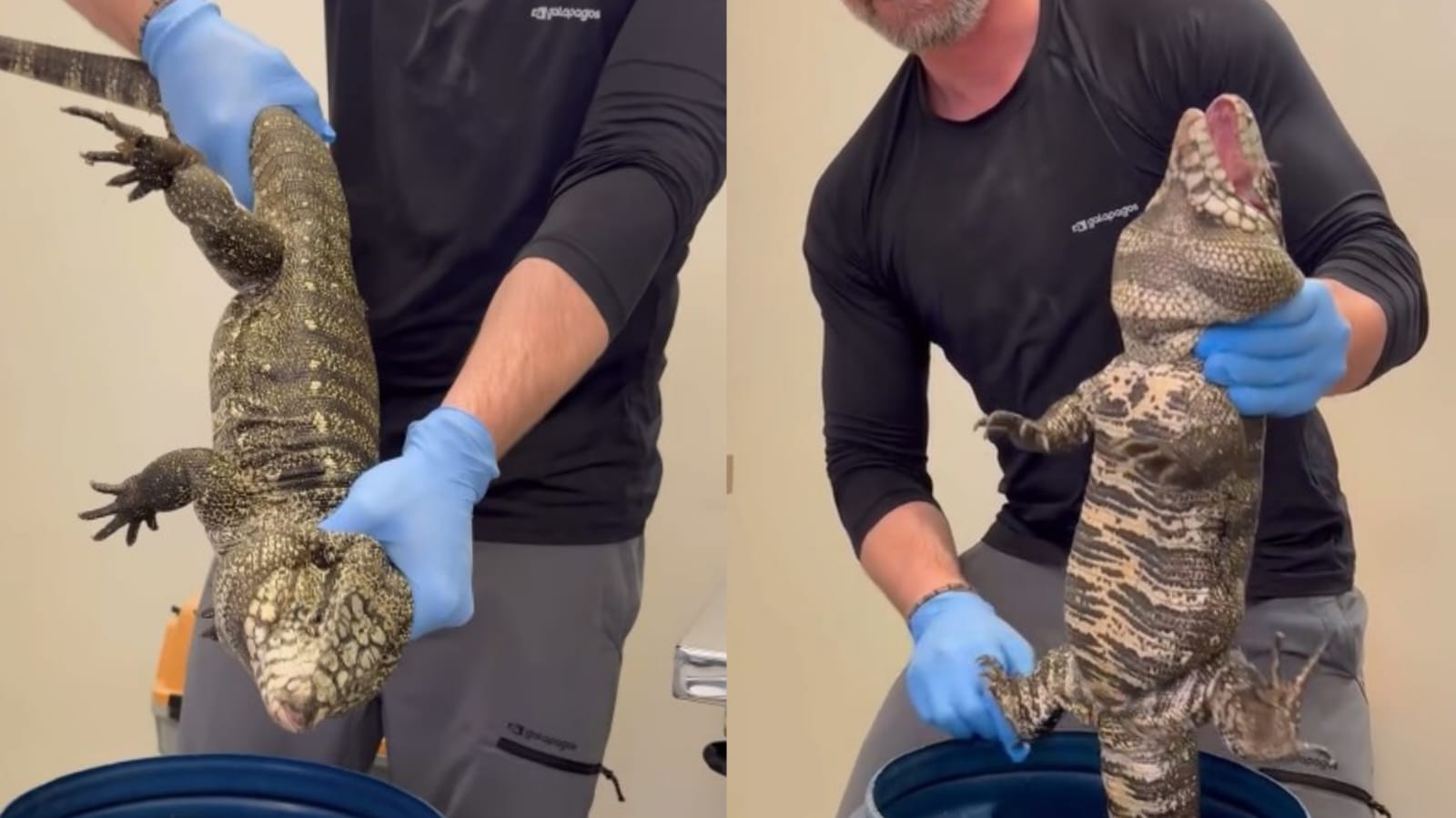 O lagarto foi capturado com segurança e será avaliado antes de ser devolvido à natureza