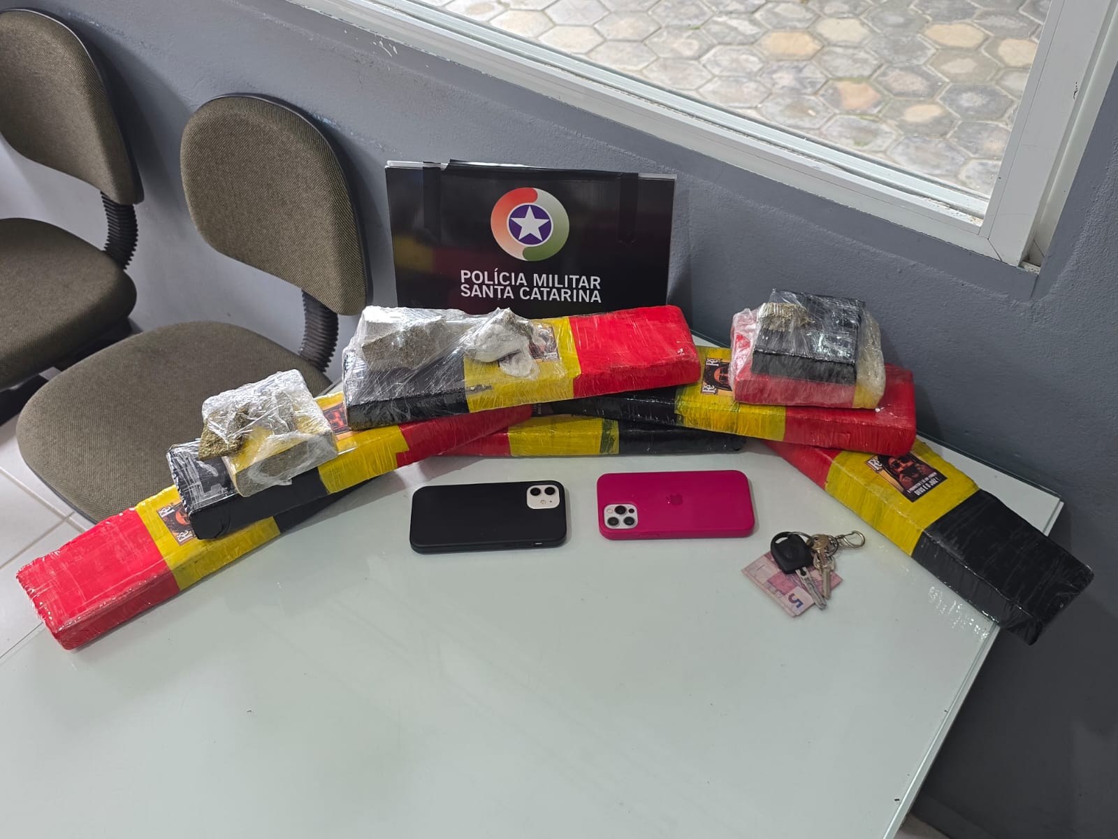 Um casal foi preso por tráfico de drogas, com 6,5 quilos de maconha, na tarde desta segunda-feira (8), às 15h30, na SC-108, em Guaramirim.