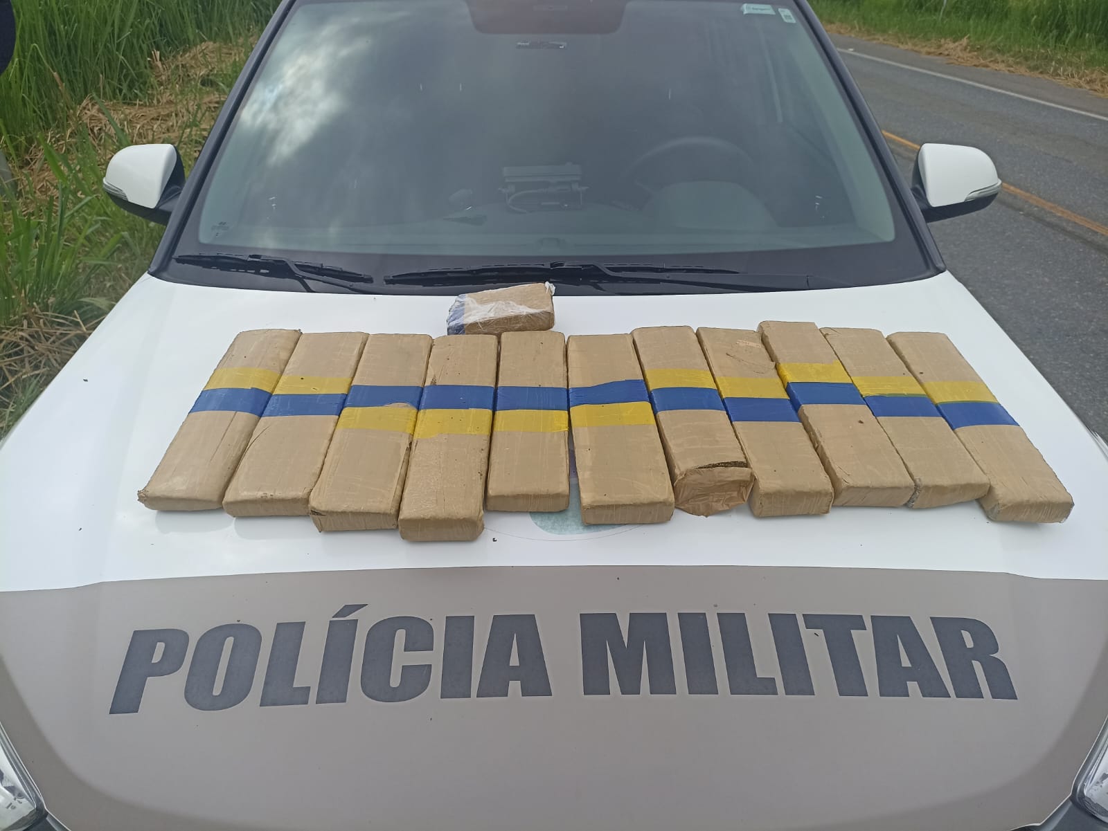 O total de droga apreendida foi de 12 quilos e o condutor de 26 anos foi conduzido para a Delegacia.