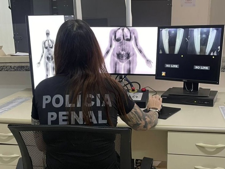 Ao passar pelo scanner corporal — equipamento de inspeção obrigatório e sem exceções para todos os internos que retornam de saídas externas —, o aparelho indicou imagem suspeita na região abdominal. Imediatamente, o detento foi isolado e colocado sob monitoramento contínuo da equipe de policiais penais.