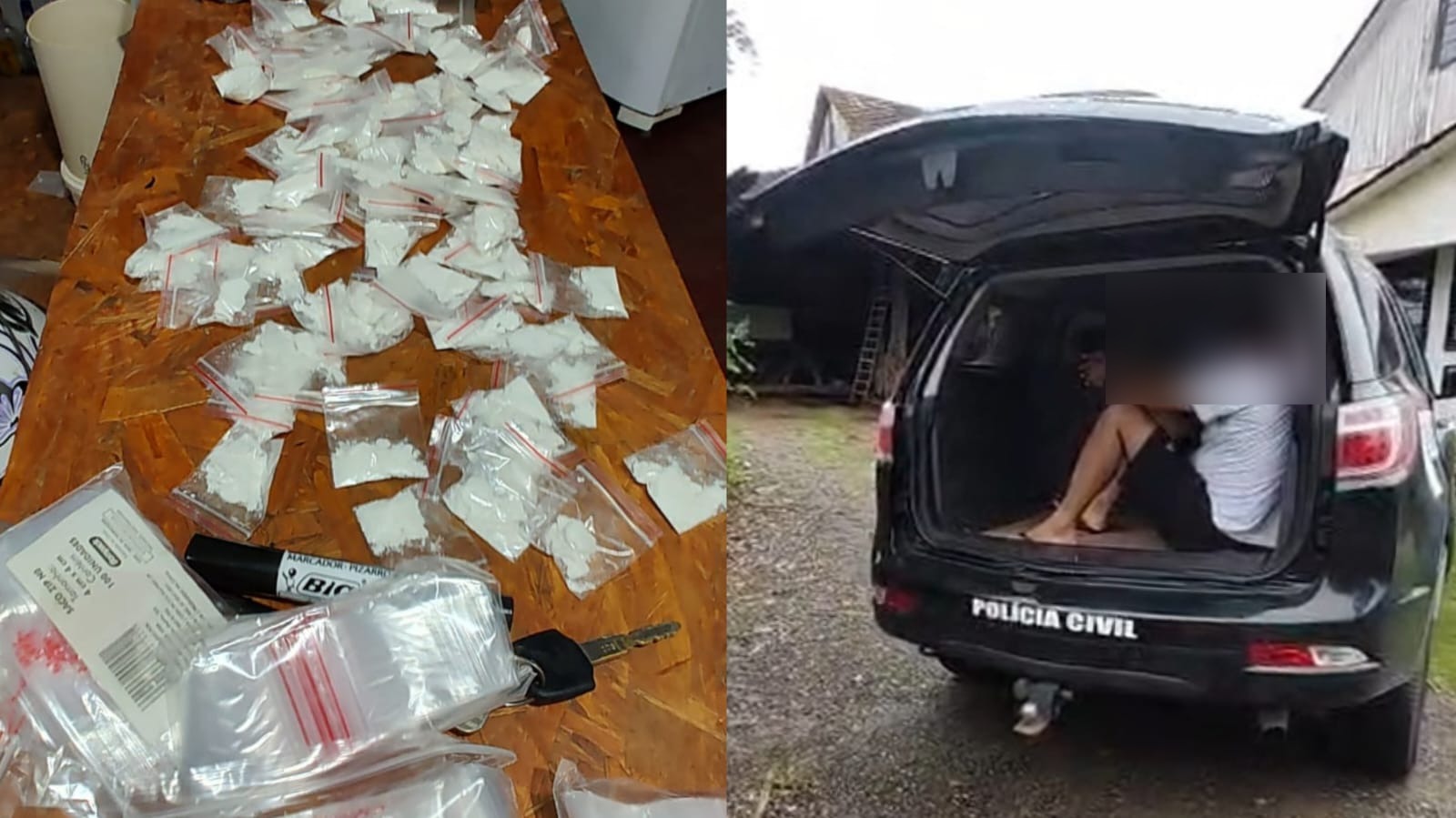 Durante as diligências, na residência localizada na cidade de Guaramirim, foram apreendidos 190 gramas de cocaína e 70 gramas de maconha.