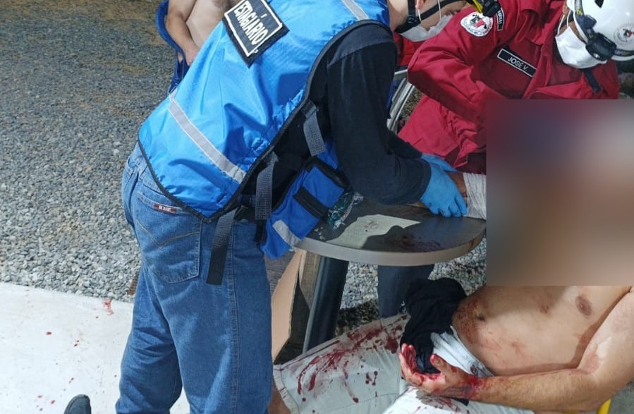 No local, os policiais constataram que dois homens de 28 e 33 anos haviam sido baleados e já recebiam atendimento do Corpo de Bombeiros. Eles apresentavam ferimentos por arma de fogo nos braços e pernas, mas estavam conscientes.