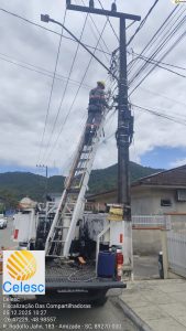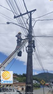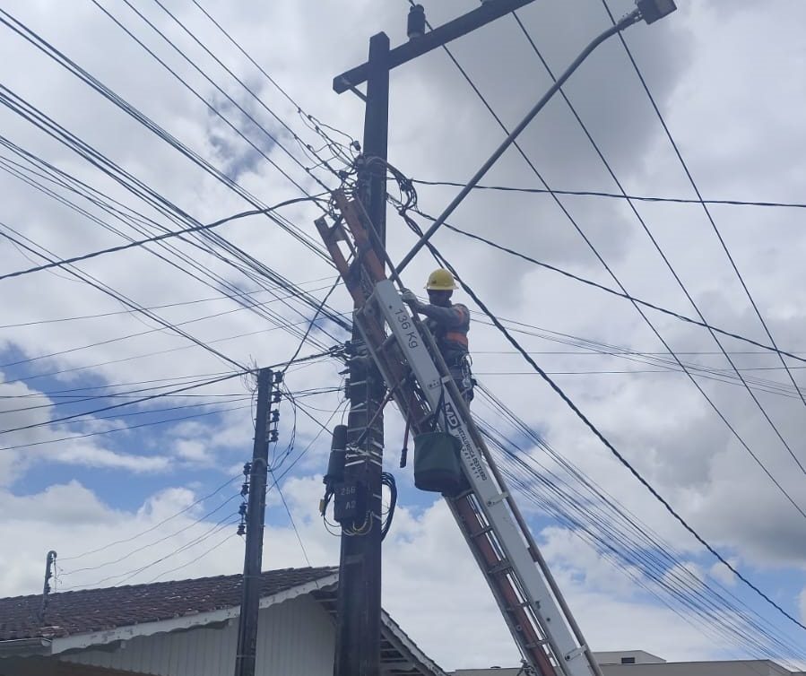 O trabalho está sendo feito pela Celesc e Engecell, com apoio da Prefeitura de Guaramirim.