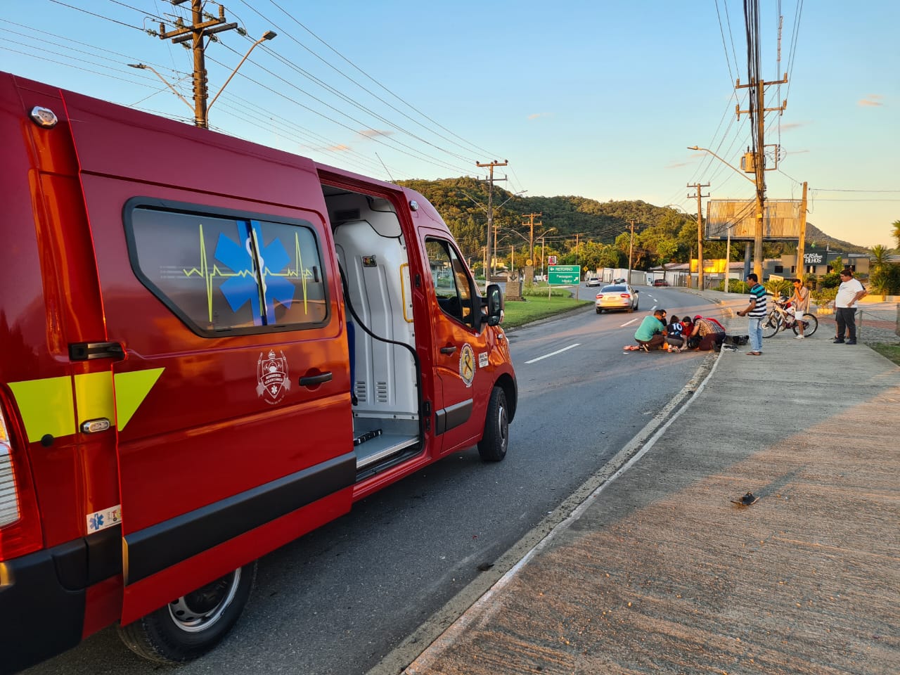 Um motociclista teve diversos ferimentos após sofrer uma queda na Avenida Prefeito Waldemar Grubba, no bairro Centenário. O acidente ocorreu por volta das 18h30 deste sábado (25) nas proximidades da Ponte do Portal, limite com Guaramirim.