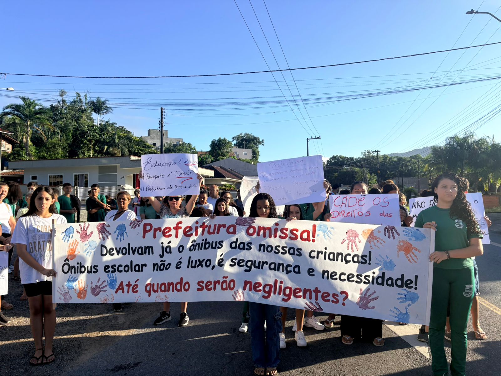 “Lei dos 3 quilômetros”: Alunos e pais protestam por corte de ônibus e Prefeitura de Jaraguá se manifesta