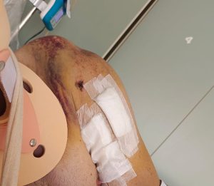 “Aí ele perdeu totalmente o movimento do braço, sensibilidade, então ele não sente mais. O braço esquerdo não consegue movimentar. E precisamos urgentemente passar por uma cirurgia com o Dr. Jayme Bertelli, que é lá em Florianópolis. E a janela de tempo assim, para reconstituir esses nervos que do Jonas foi arrancado da espinha, é só de seis meses.