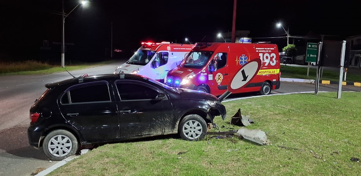 Um motorista de 32 anos perdeu o controle da direção e colidiu o carro contra um canteiro na BR-280, no bairro Ribeirão Cavalo, em Jaraguá do Sul.