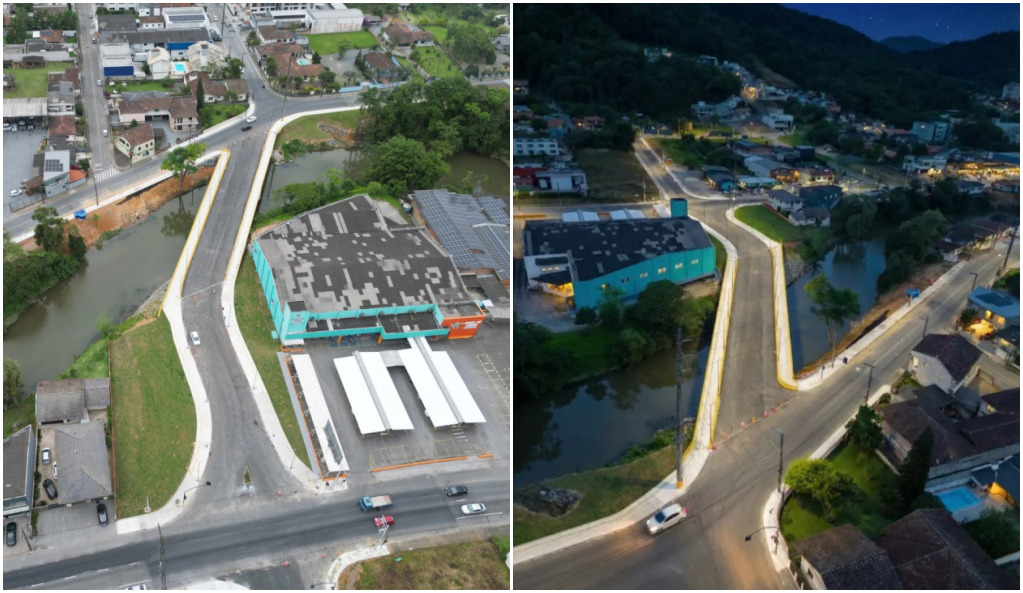 A estrutura com 97 metros de extensão, conecta os bairros Barra do Rio Cerro e São Luís e recebeu investimento de R$ 10.390.070,68, com recursos próprios do Município.