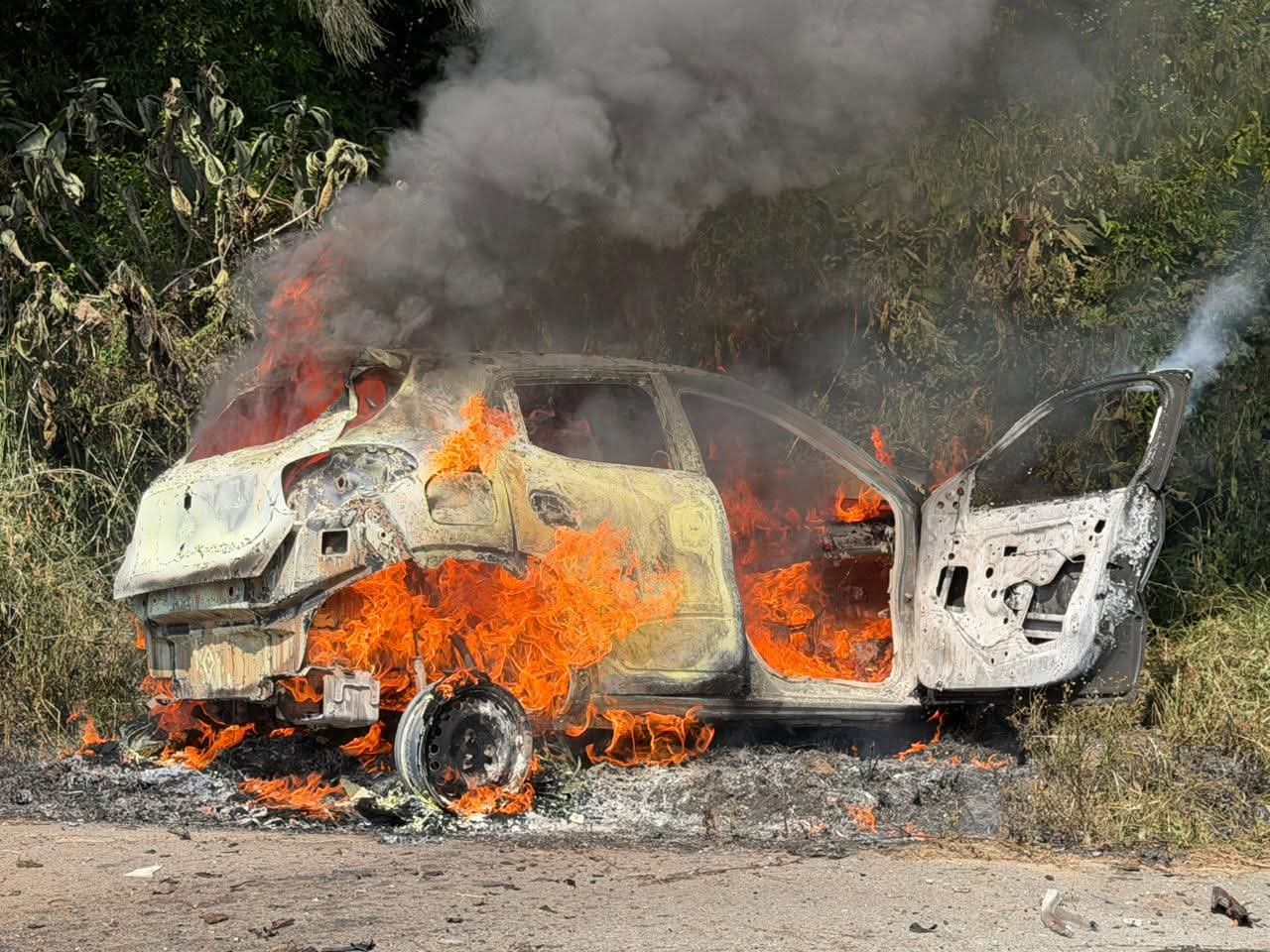 O Renault Kwid onde estavam as vítimas pegou fogo após o acidente. Caio morreu após ser ejetado para fora do veículo. Odacir morreu carbonizado.