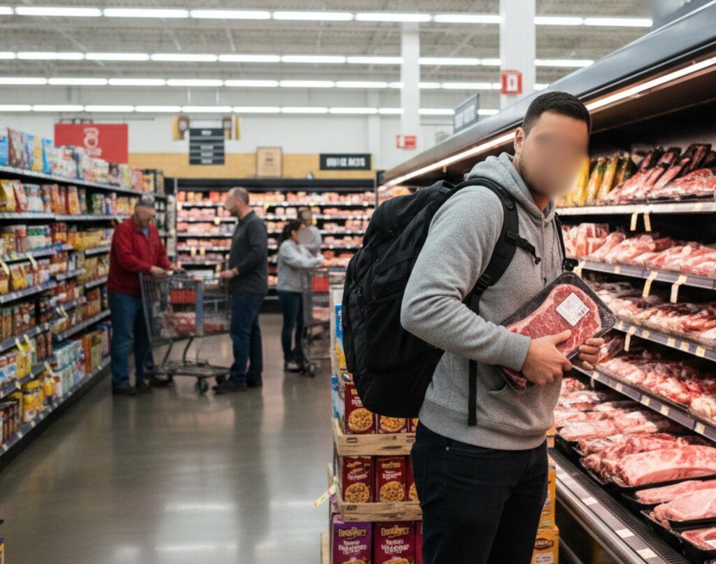 Um homem foi preso em flagrante por furtar picanha em supermercado no bairro Água Verde. Foi no fim da tarde desta quinta-feira (15), por volta das 18h30, na Rua João Wiest Júnior. O segurança do estabelecimento flagrou, por meio do sistema de monitoramento, um homem escondendo uma peça de carne tipo picanha embaixo da roupa.