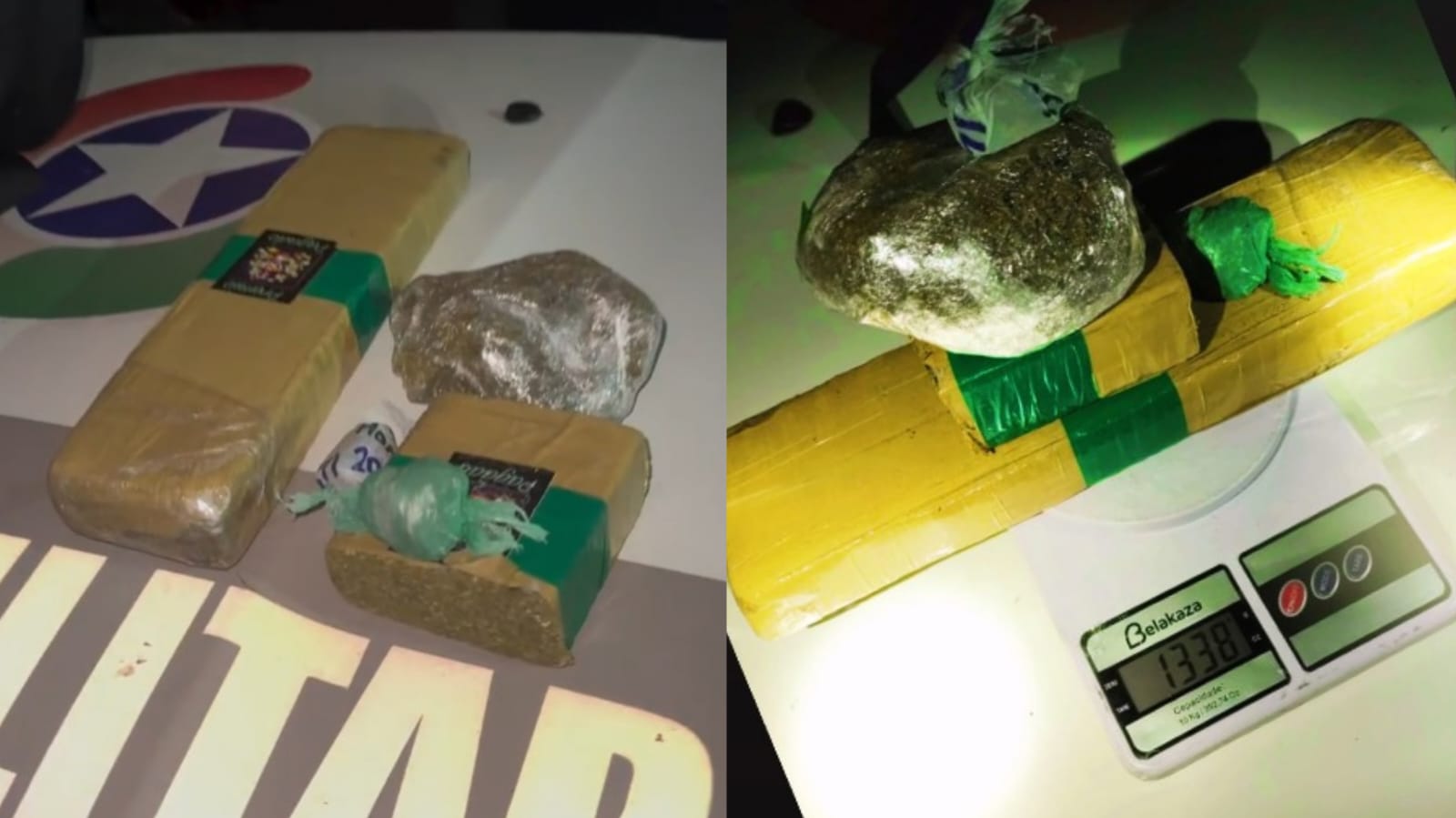 O material foi encaminhado ao Batalhão de Polícia Militar. A droga foi pesada, totalizando 1,338 kg.