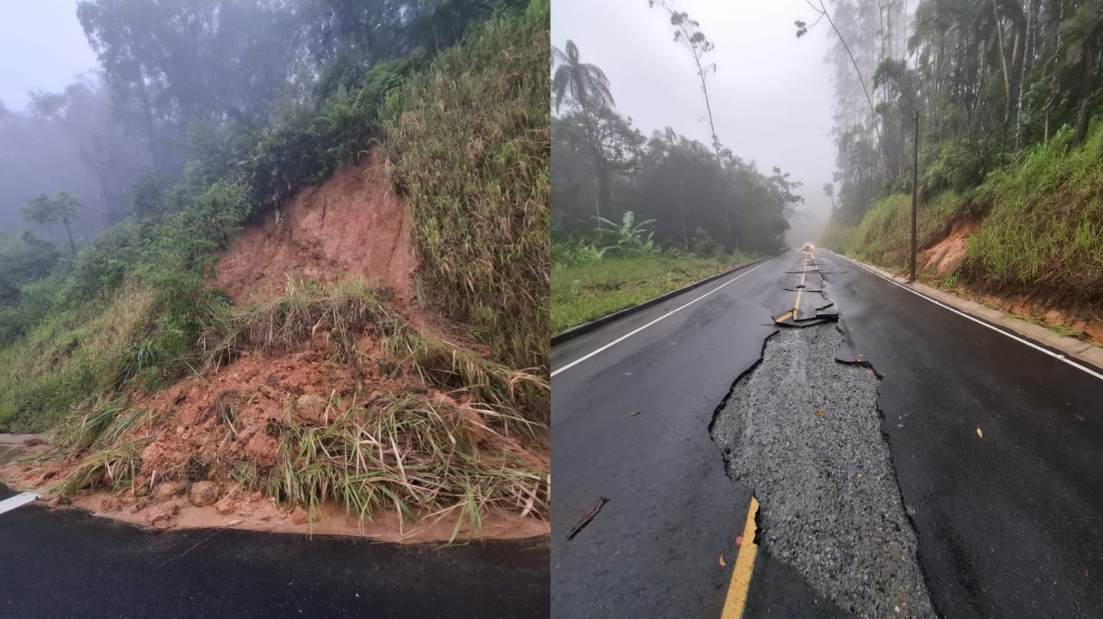 O temporal causou quedas de árvores, barreiras de terra sobre a pista, desbarrancamentos e comprometimento severo da pavimentação asfáltica