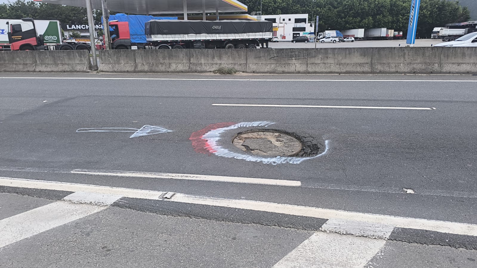 Quem passa pela BR-280, depois do posto da PRF em Guaramirim, já se deparou com uma tampa que está no meio da pista de rolamento. Para quem passa diariamente pelo local, já está acostumado a desviar. Já para quem não mora aqui, ‘bater roda’ neste ‘buraco’ é bem frequente.