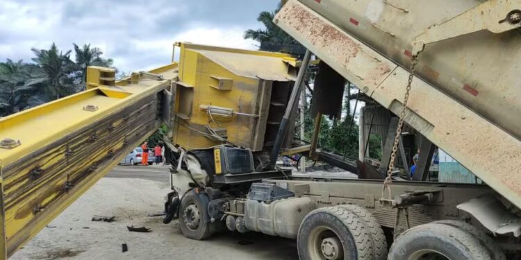 Caçamba do caminhão estava levantada e atingiu a máquina