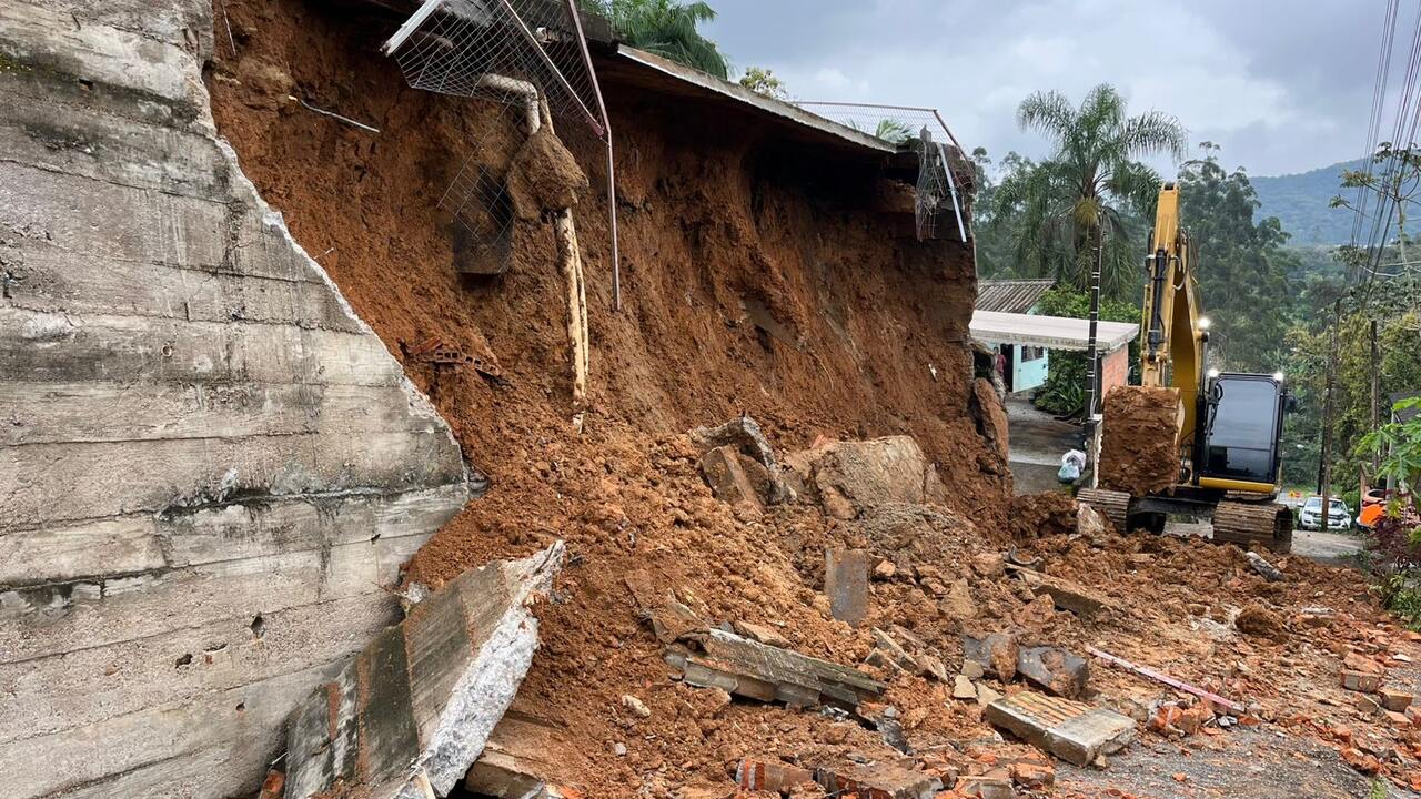 [Vídeo] Após chuvas, muro de casa cai em Guaramirim