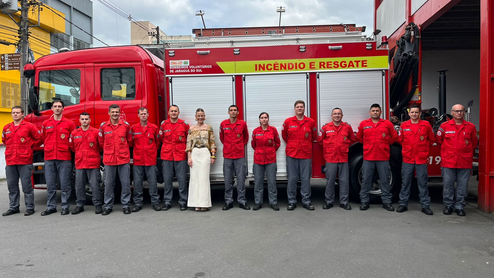 Os Bombeiros Voluntários de Jaraguá do Sul receberam na manhã desta sexta-feira, 14, uma importante doação de equipamentos e a reforma completa de um caminhão de combate a incêndio, entregue pela família do empresário Diether Werninghaus, representada pela filha, Anne.